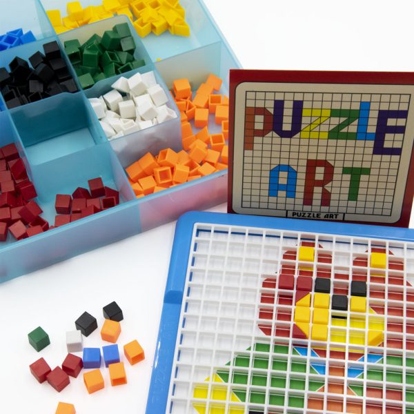 A mozaik puzzle szettben 490 darab különböző színű és formájú elemet találtok, amelyekkel szinte bármilyen egyszerűbb képet, alakzatot és mintát ki lehet rakni a mellékelt rácsos táblán.
