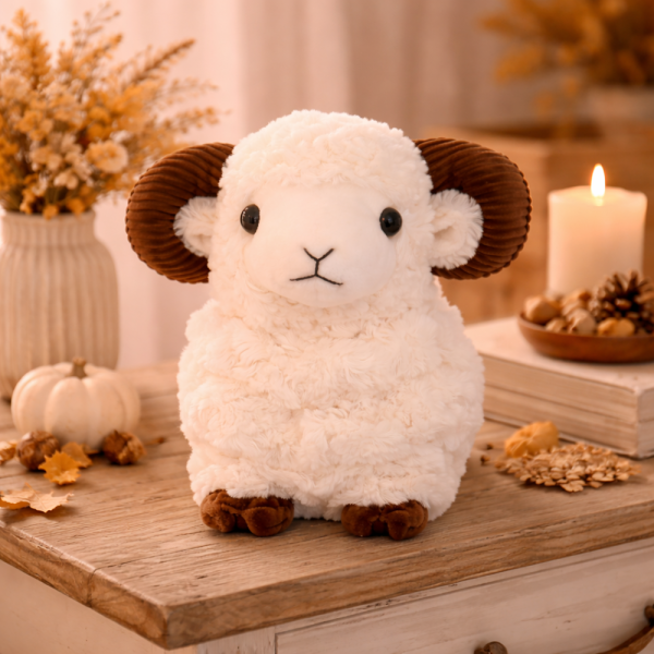 BundiKos fehér plüss kos – selymes tapintású, bájos plüss figura gyerekeknek és ajándéknak (BBJ)