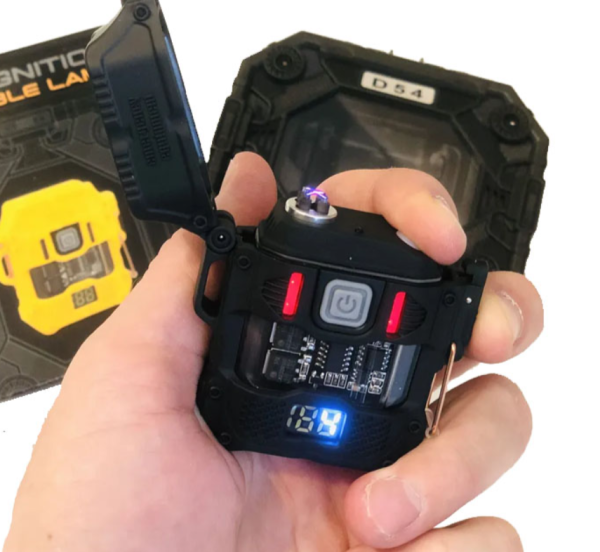D54 elektromos, víz- és szélálló öngyújtó, zseblámpa funkcióval, díszdobozban (BBV)