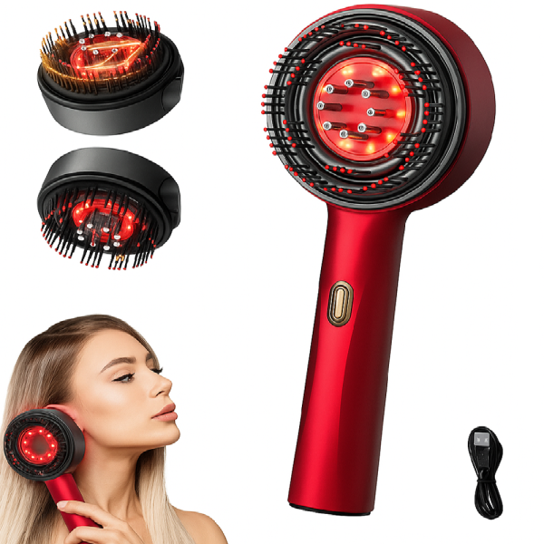 Elektromos fejbőr masszázskefe infravörös fénnyel és beépített olajadagolóval – USB-s hajápoló masszírozó (BBM)