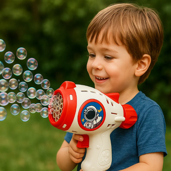 Engedd szabadjára a képzeletet és a nevetést a rakéta formájú automata buborékfújó fegyverrel, amely pillanatok alatt színes buborékfelhőt varázsol a levegőbe!
