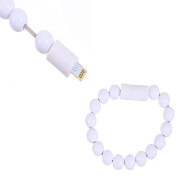 Fehér színű USB töltőkábel karkötő iPhone-hoz – lightning csatlakozó (FX) (BLLV)