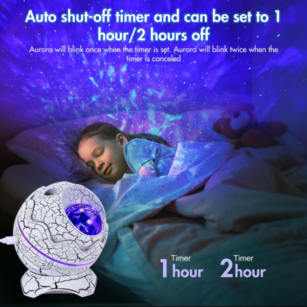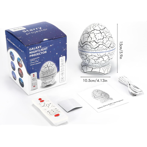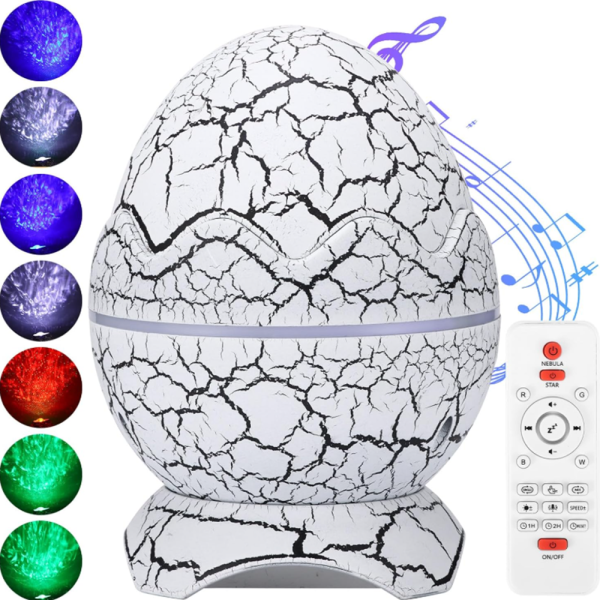 Galaxy fényprojektor bluetooth hangszóróval és fehér zajjal – LED csillag aurora dinoszaurusz tojás éjszakai fény gyerekszobába (FX)