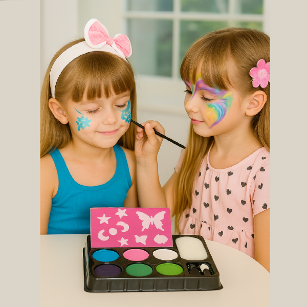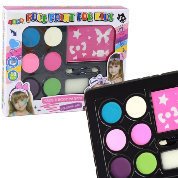 Gyerek kreatív arcfestő készlet kislányoknak – 6 élénk szín + sablonok a tökéletes játékhoz J-4012 (BBJ)