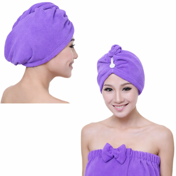 Hajszárító törölköző lila színben – gyorsan száradó mikroszálas hajkendő (BLLV)