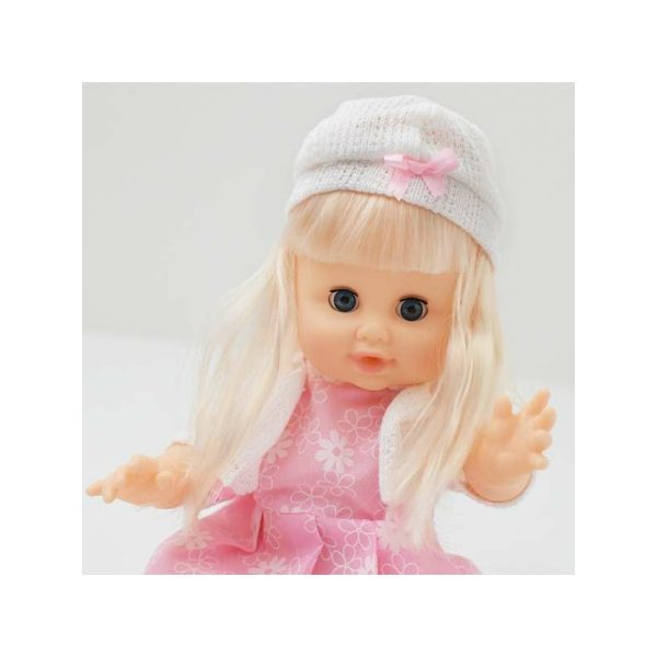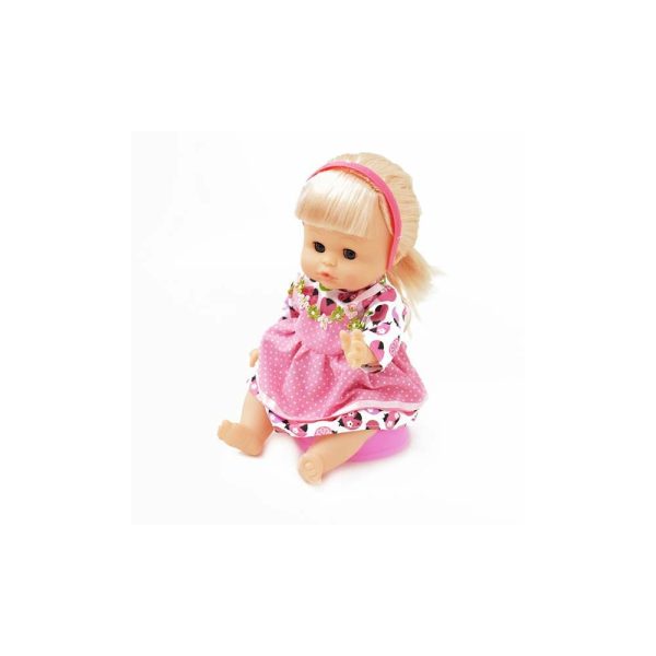 Ez az interaktív játék baba beszél, ha lenyomod a hasát, és pisil, ha megitatják.