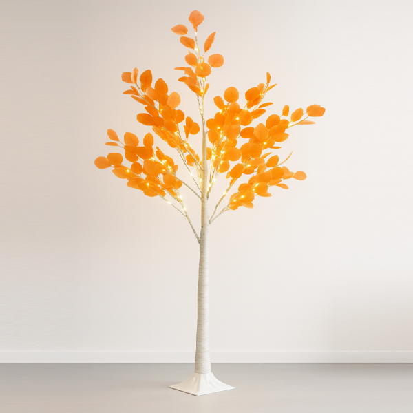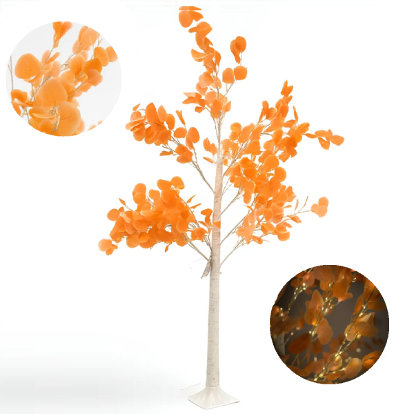 LED-es őszi juharfa dekoráció – 200 cm-es hangulatvilágítás narancssárga levelekkel, beltéri és kültéri használatra (BBD)