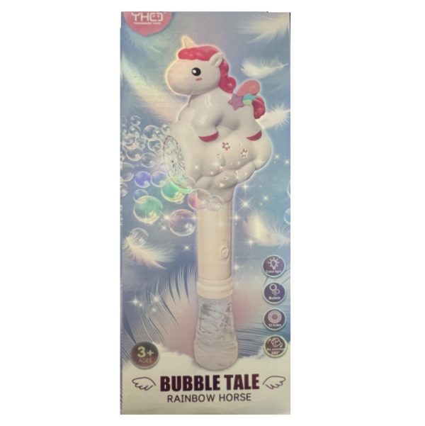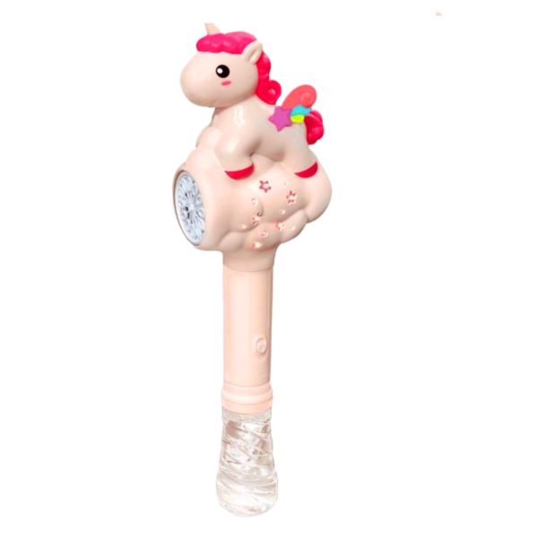 A mágikus unikornisos design lenyűgözővé teszi ezt a buborékfújót, amely minden gyermek fantáziáját megmozgatja. A színpompás unikornis és csillagok körülvett burkolat különleges légkört teremt, miközben a buborékokat fújja.