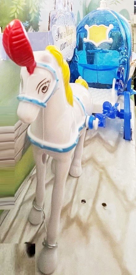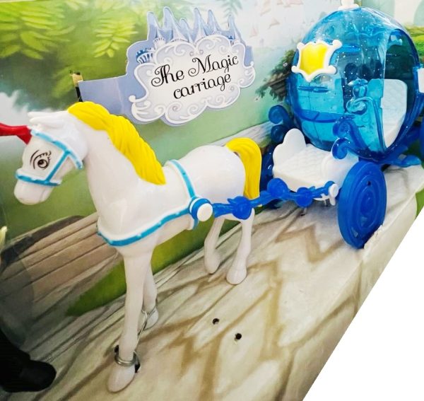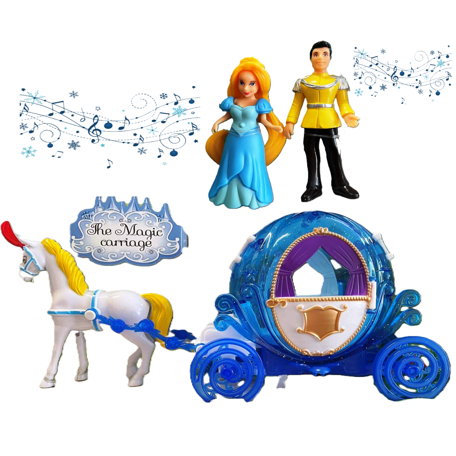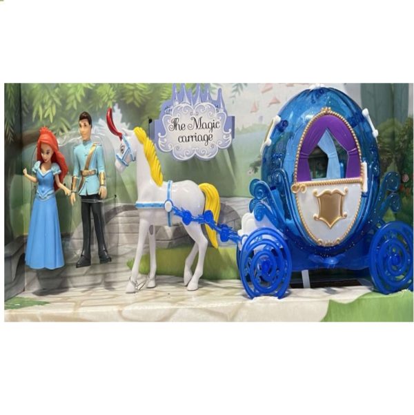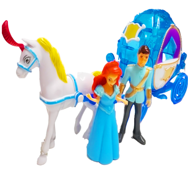 Mesebeli zenélő hintó – fehér lóval herceggel és hercegnővel (BBMJ)