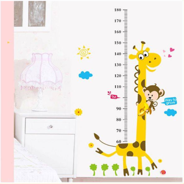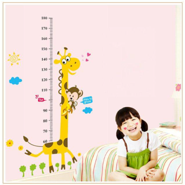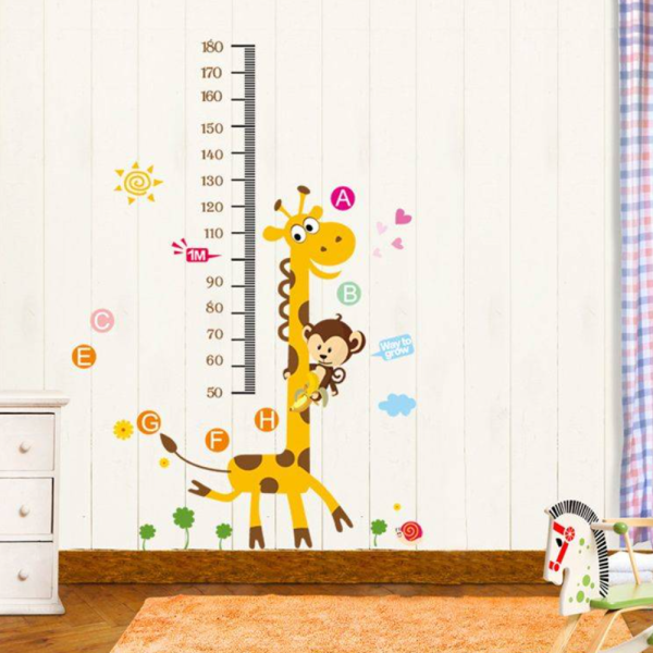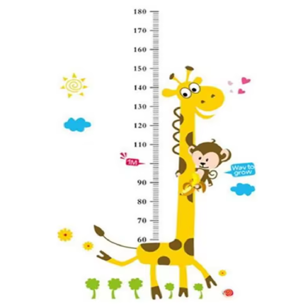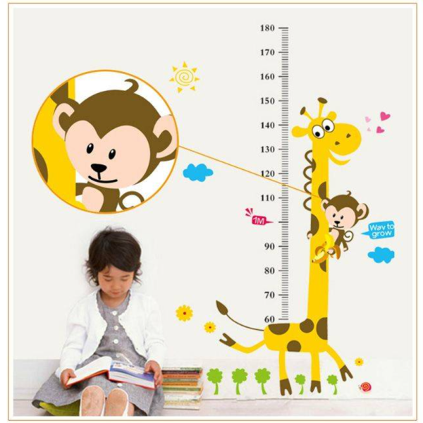 Mókás zsiráfos–majmos falmatrica gyerekszobába – magasságmérő centiméterrel, 88×180 cm, vidám dekoráció (FX) (BLLV)