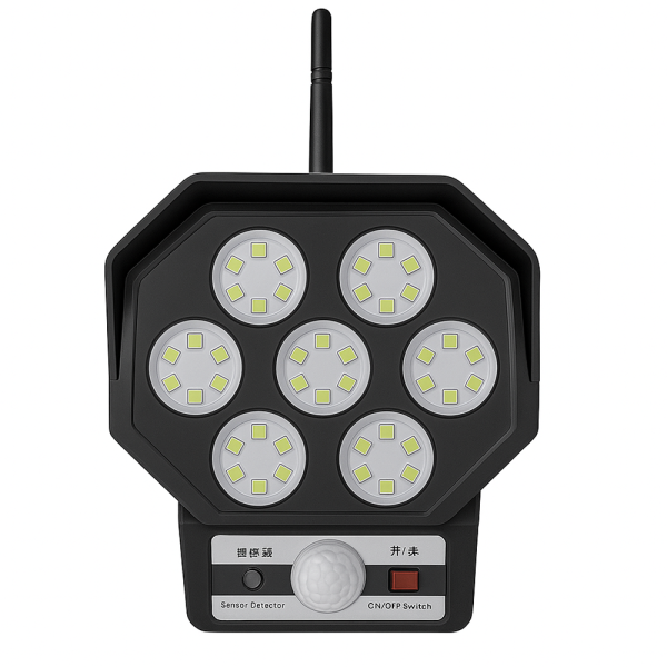 Mozgásérzékelős napelemes LED lámpa álkamerás CCTV hatással – kültéri biztonsági világítás távirányítóval BK-36 (BBL)