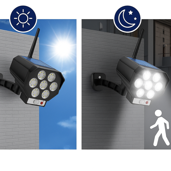 A BK-36 mozgásérzékelős napelemes LED lámpa egy modern, környezetbarát megoldás otthona kültéri biztonságának növelésére, amely a megvilágítást és a megfigyelés illúzióját egyesíti.