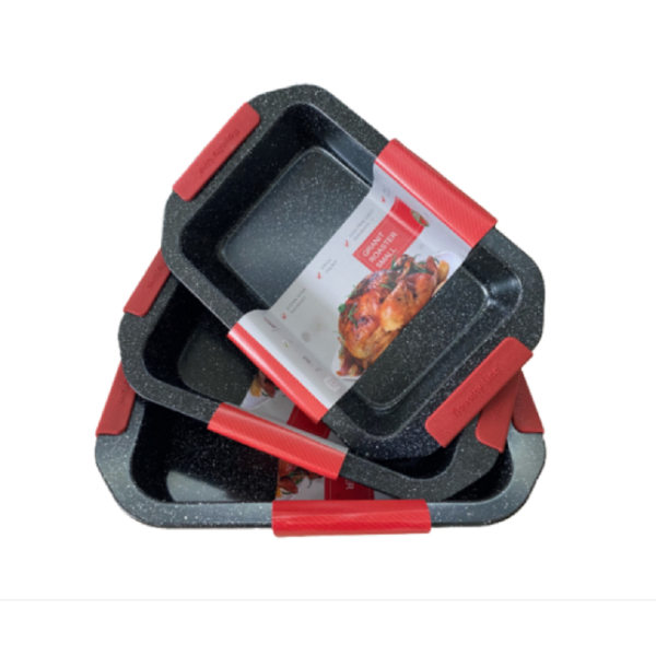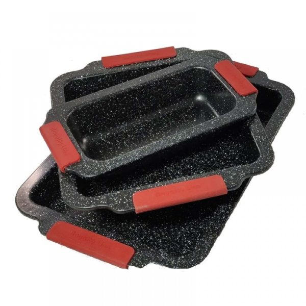 RL-MM3 3 részes tapadásmentes, könnyen tisztítható, márvány bevonatos tepsi készlet – levehető, hőálló, szilikon fogantyúkkal (BBA)