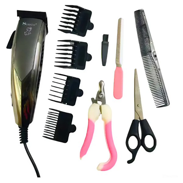 A SURKER SK-718 kábeles szőrvágó szett kisállatoknak a tökéletes választás a kedvenceid ápolásához és karbantartásához.