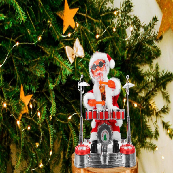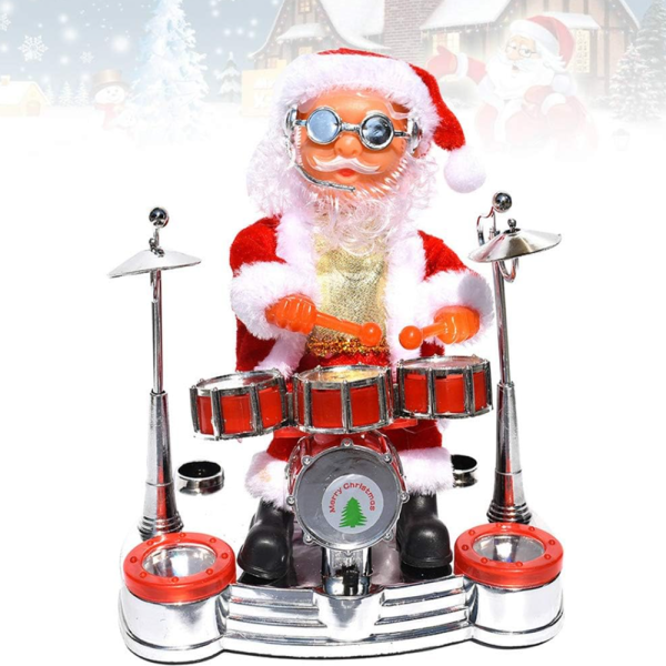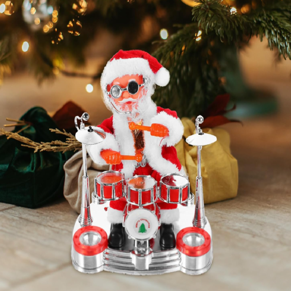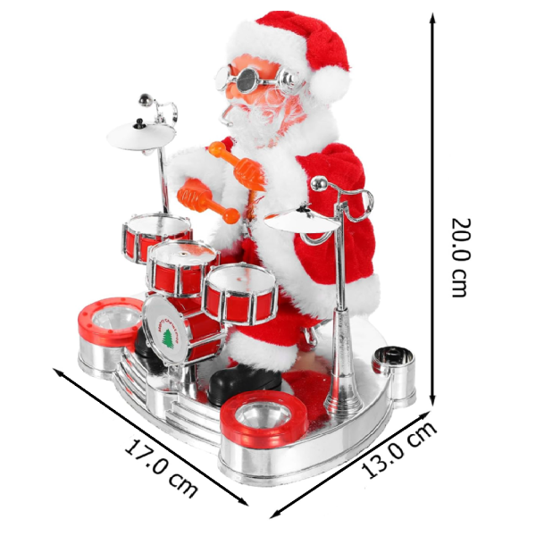 Táncoló, éneklő party Mikulás figura – zenélő és mozgó doboló karácsonyi dekoráció, vidám ünnepi hangulathoz HS272-8 (BBM)