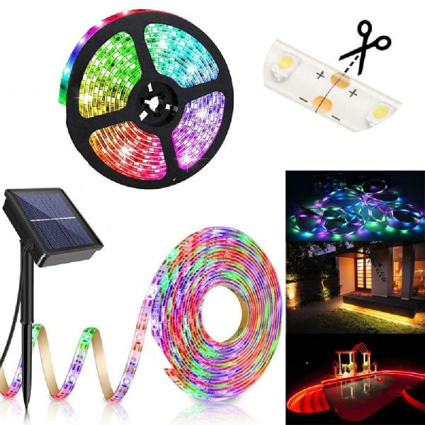 Távirányítással vezérelhető, időzíthető, napelemes, kültéri RGB LED szalag – 5M (BBV) (BBD)