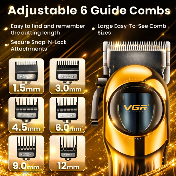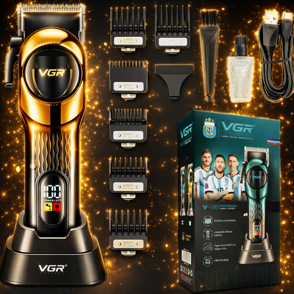 A VGR V-166 professzionális hajvágó egy modern, nagy teljesítményű eszköz, amely tökéletes választás otthoni használatra és professzionális fodrászati munkához is. A készülék elegáns arany színű kialakítással, erős lítium akkumulátorral és precíz rozsdamentes acél pengékkel rendelkezik, így könnyedén készíthetők vele pontos hajvágások, szakállformázások vagy kontúrvágások.
