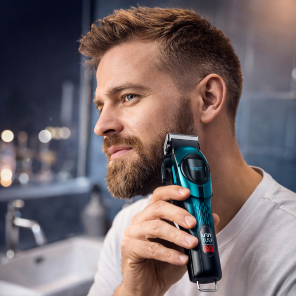VGR V-166 professzionális akkus hajvágó – vezeték nélküli haj- és szakállvágó LED kijelzővel, rozsdamentes acél pengékkel, türkiz (BBD)
